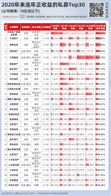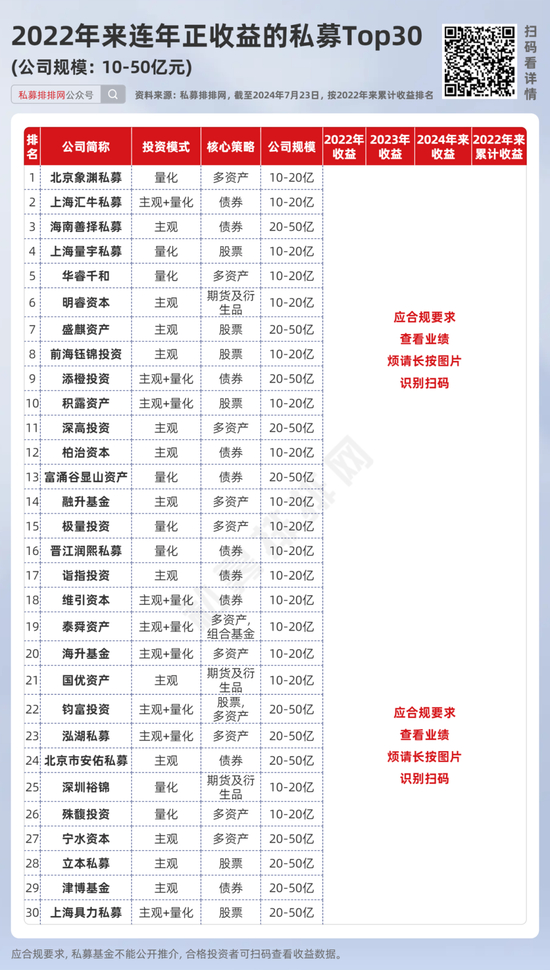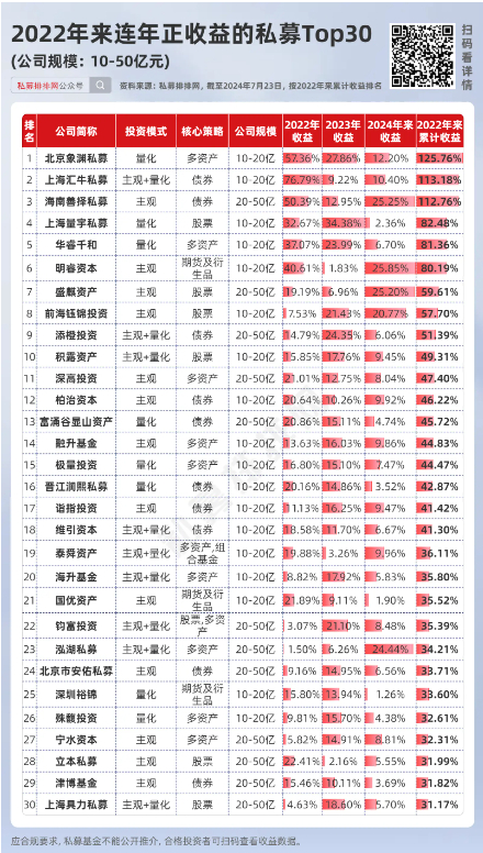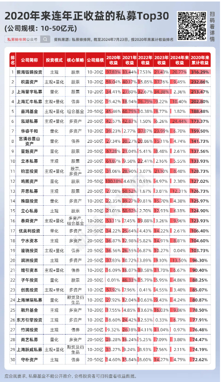 10-50亿规模:55家私募连续5年正收益!