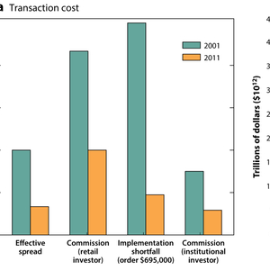 从学界和监管机构的多项研究来看,程序化交易整体上能够降低交易成本,缩小买卖差价,提高市场效率,并在正常状态下贡献市场流动性。下图对比了2001年和2011年(程序化交易普及前后)美股的交易成本[2]:可以看出,由于买卖差价的缩小,散户投资者的隐性交易成本下降了65%;订单较大的机构投资者交易成本也下降超过50%。