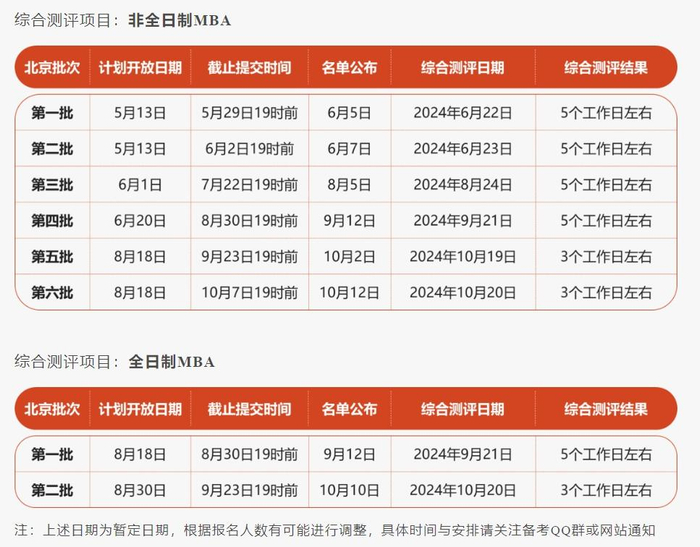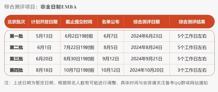 北科 MBA 将 " 预面试 " 更名为 " 综合测评 ",第一批、第二批综合测评已于 7 月 13 日 -14 日举行,其余批次将在 9 月 21 日 -22 日、10 月 19 日 -20 日分别举行。