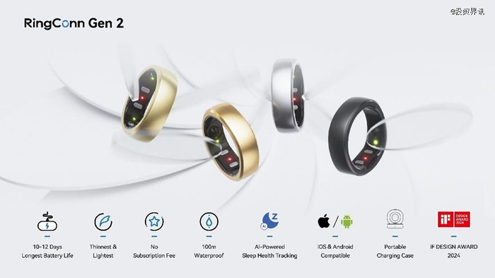 健康、睡眠检测功能是RingConn的核心技术。基于上海交通大学研究成果,玖治团队进行产品化,指环内部电路、算法以及交互系统全部自研。目前,RingConn新品RingConn Gen 2具备监测睡眠呼吸暂停综合症(OSA)、压力、血氧以及骑行、跑步、游泳等运动监测等功能。功能增加后,RingConn Gen 2对比一代产品,续航提升到10-12天,重量、薄度都相应递减,重量仅2克左右。得益于自研的低功耗技术,RingConn Gen 2的平均续航为10-12天,超过市面上的其他智能戒指。近期,新品RingConn Gen 2已经上线Kickstarter海外众筹平台。