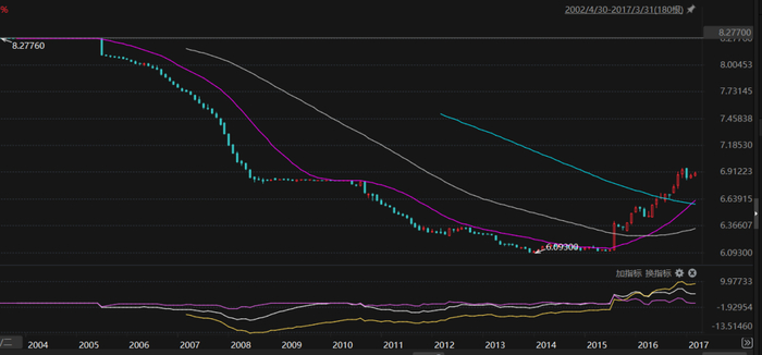 货币政策是平衡中性,由于全年CPI/PPI从高位回落,10年期国债利率一路下行,政策利率没有任何变化,而人民币正是从2005年开始了长期升值。