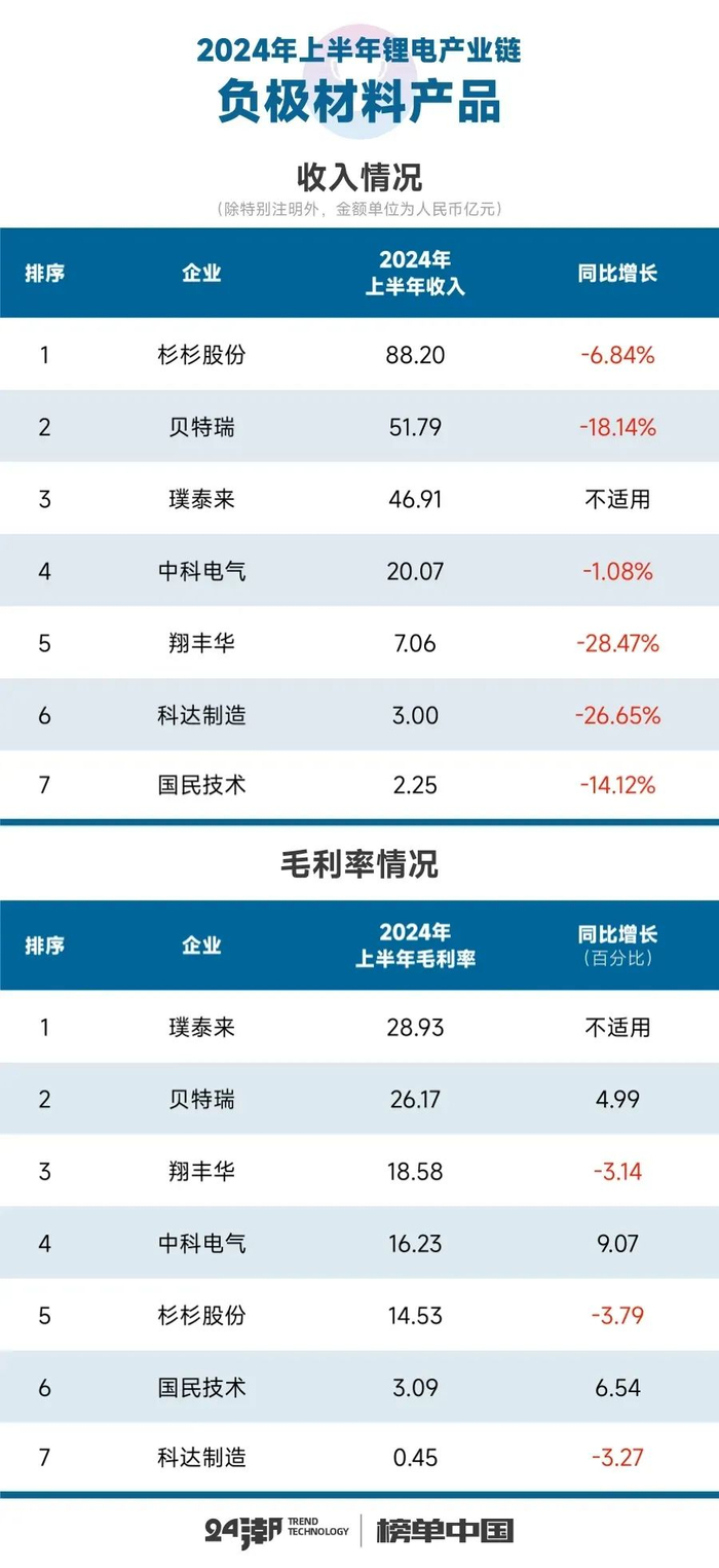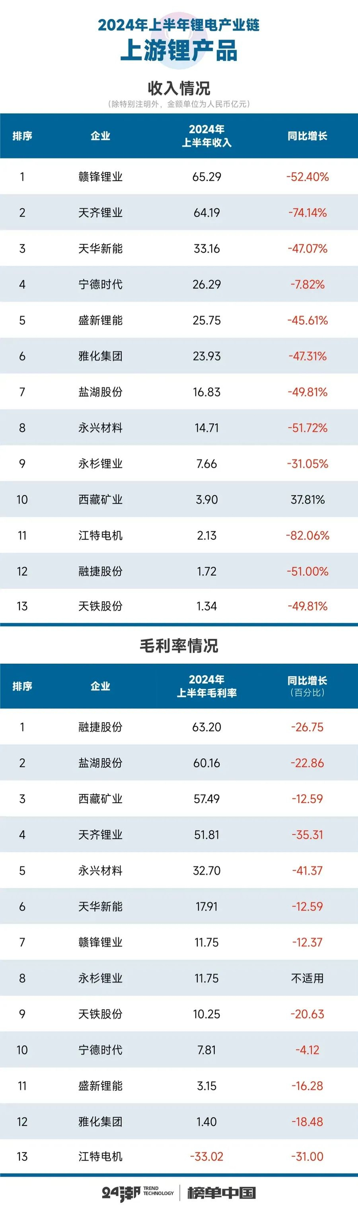 事实上,这一切已经在企业最新财报(2024年半年报)中有所体现。据24潮产业研究院(TTIR)统计分析100多家锂电上市公司财报发现,2024年上半年整个锂电产业链上市公司营业收入合计为4708.10亿元,约同比下降了20.21%;整体毛利率为18.94%,约同比下降了2.26个百分点。