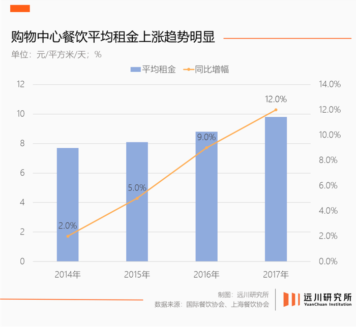 除去疫情期间的让利因素,国内一二线城市购物中心的房租一直在增长,是餐饮业诸多变化的核心因素。