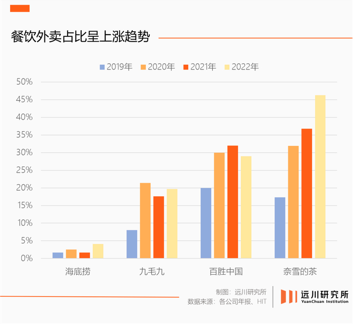 所以,木屋烧烤虽然表示打包影响口感,但面对外卖贡献的利润增量,依然大开卫星店,主动投怀送抱。