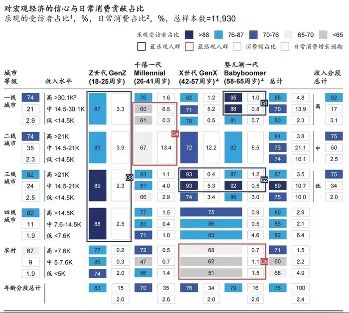 G2:三线城市的中老年;G3:当下的00后;这群人或者这群人的父母依靠房产储备完成了原始积累,生活的安全垫比较高