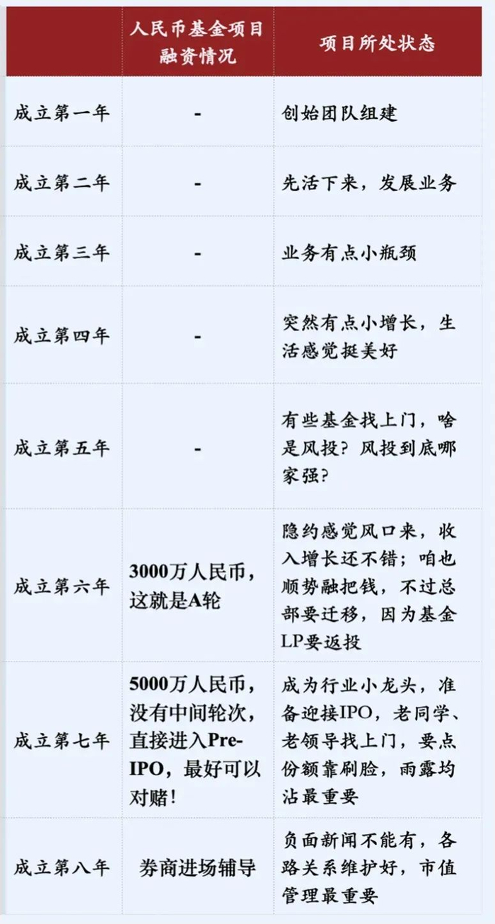 上图是中国本土创业公司融资的一个缩影,一般一个中国企业,在成立5-8年才迎来真正意义上的第一笔投资,这才是常态。