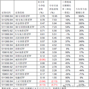 今年债券ETF收益明显,全部20只债券ETF年初至今平均收益3.78%(中位数),大幅跑赢银行存款及理财收益;8只产品收益率超过5%,占比20%。不单30年国债ETF(511090.SH)份额大幅增长,包括政金债券ETF(511520.SH)、十年国债ETF(511260.SH)、城投债ETF(511220.SH)、上证可转债ETF(511180.SH)、可转债ETF(511380.SH)等多只债券ETF份额增长率超过200%。其中前三个基金今年以来均实现3个点以上的收益。后两个转债ETF收益为负。一个可能的解释是伴随着转债市场的下跌,大量资金借道ETF抄底可转债。相比直接购买转债个券可能遭遇的市场大跌风险,转债ETF更加分散,防御性更好,同时可以分享市场上涨的收益。