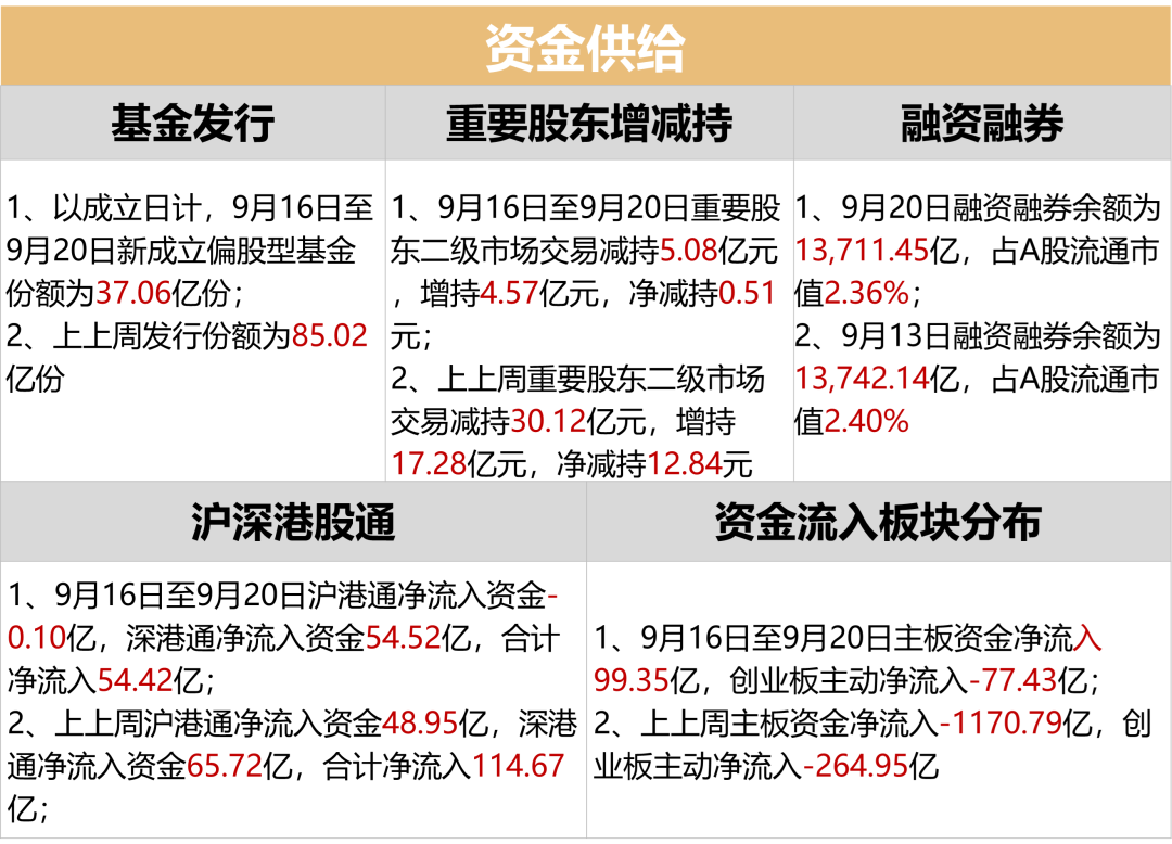货币方面,本周(9/16-9/20)央行货币净投放9179亿元,逆回购到期(7天)为8845亿元;上上周央行货币净投放6743亿元,逆回购到期(7天)为2102亿元。