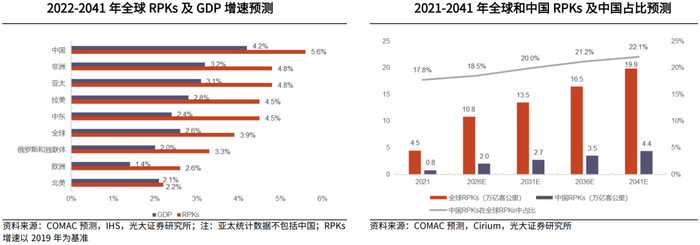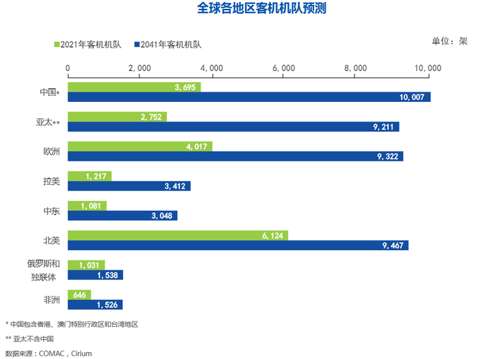 根据中国商飞对全球民航市场的预测,未来20年全球的机队总规模仍有巨大的增量。如下图所示: