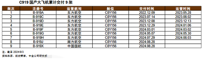 国产大飞机C919已经进入常态化商业运营,订单饱满。