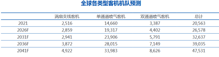 从结构来看,2041年单通道喷气客机(窄体客机)仍然是主流,占全球机队的比例达到71%。