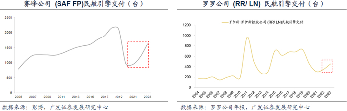 赛峰、罗罗公司在民航领域的发动机交付台数开始逐步回升。