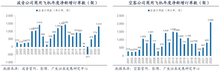 波音公司2023年净新增订单1314架,同比2022年774架增长70%,接近历史新高。