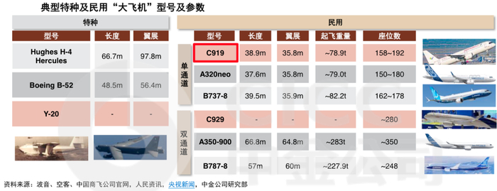 其中窄体客机的需求最为广泛,其主要代表机型包括:空客A320系列、波音737系列、中国商飞C919。