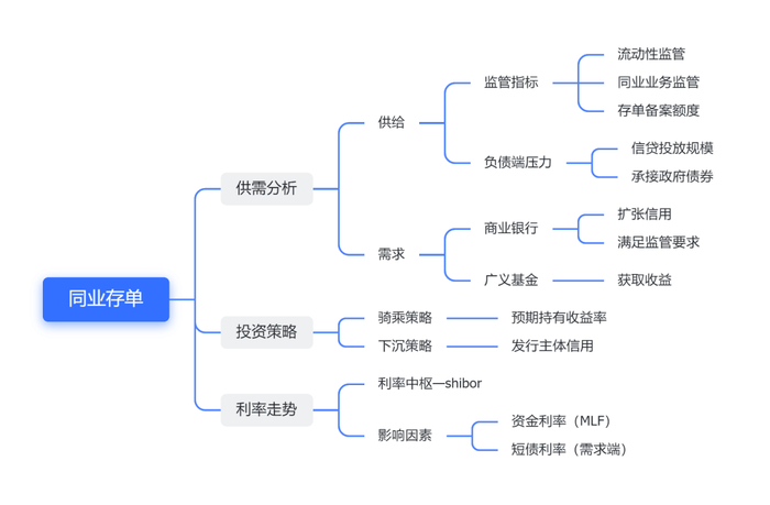 扩张信用:在实体经济需求偏弱,银行信贷规模收缩时,银行的资产端扩张需要进行其他配置,对同业存单的需求因此上涨。尤其是宽信用政策背景下,央行通过降准等政策手段意在提振市场需求,而企业实际融资需求却不高,银行就需要通过同业存单来释放流动性。