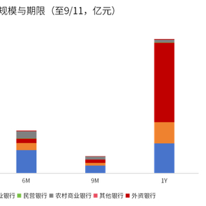 截至9月11日,同业存单市场规模达到17.81万亿元,在现有债市结构中占比第四,次于地方政府债、金融债与国债。存单的发行期限主要有1M、3M、6M、9M、1Y,当前市场未到期存单存量中以1Y为主。从发行主体上看,城商行、国有行、股份行是同业存单的发行主力,农商行与外资行发行占比相对较少。其中由于国有行与深耕下沉网点的农商行在存款负债上更具备优势,城商行与股份行相对有所欠缺,因此更倾向于通过发行存单补充负债。