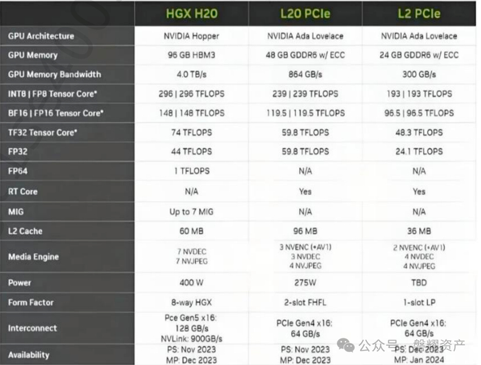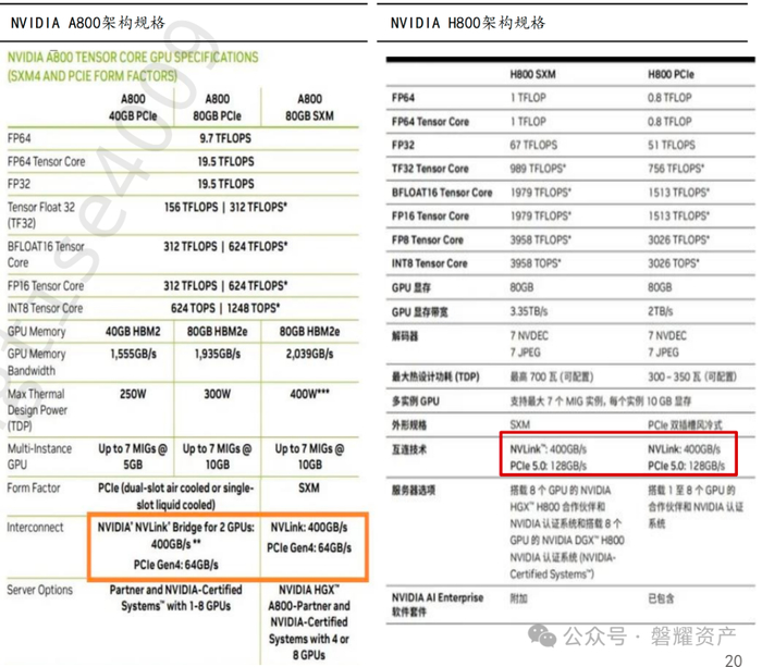 虽然紧跟着美国各项禁令后,英伟达为中国市场推出了A800、H800、以及进一步推出H20等中国特别版GPU芯片,但是看到此类GPU产品的性能与原先的H100、A100相比,例如A800和A100相比整体通信贷款性能上就降低了33%,影响了多卡互联的性能;而H800更是较H100在整体通讯带宽性能上降低了55%左右,进一步的削弱了中国AI大模型训练的竞争力,导致模型的训练需要更长更久的时间周期。