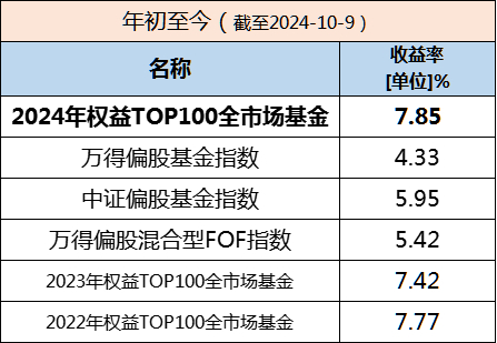 截止到今年10月9日,我们2024权益Top100全市场基金经理的收益率为7.85%,跑赢了万的偏股基金指数的4.33%和中证偏股基金指数的5.95%。这是我们在2022年初推出这个榜单以来,连续第三年跑赢了万得偏股基金指数。这也说明,我们选择优秀基金经理是能取得超额收益的。