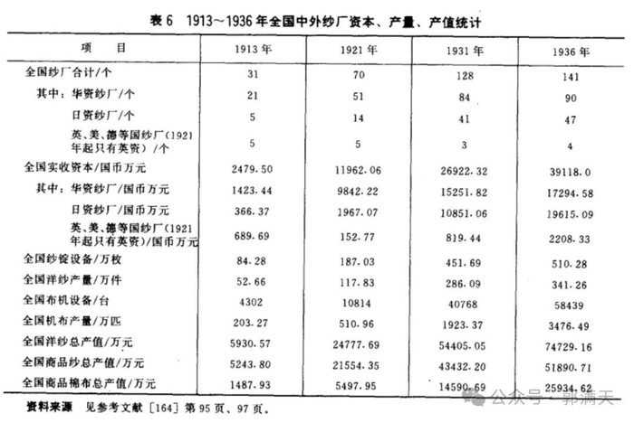中国民族资本纺织企业虽然在一战后获得了难得的发展时期,但同期日资纺织企业也在国内迅猛发展,甚至日资纺织企业的税务负担还低于本国的民族资本企业。到1936年,日资纺织企业的数量虽然不如中资企业,但是资本规模超过了中资企业。