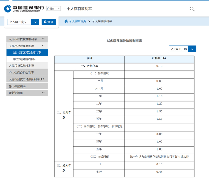 图/10月18日早上,工商银行网站确认已下调挂牌人民币存款利率 五年期整存整取仅1.55%