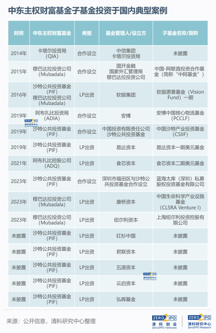 中东主权财富基金投资中国设立子基金情况