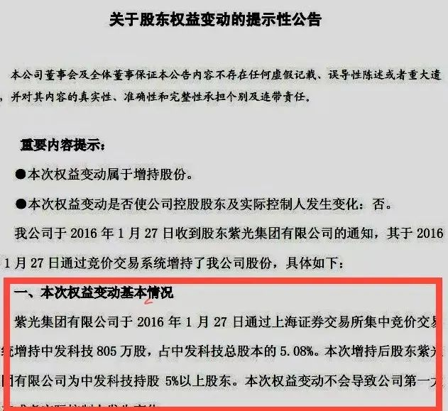 但在19天之后(6月22日),赵伟国辖下的紫光集团及其一致行动人紫光通信系基于再度增持中发科技达到10%,触发第二次举牌,仍然“不排除在未来12个月内继续增持中发科技股份”。