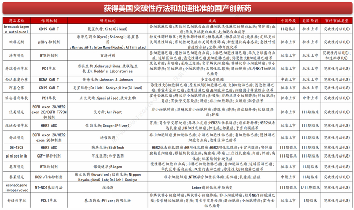 图:部分代表性的国产创新药海外上市品种