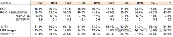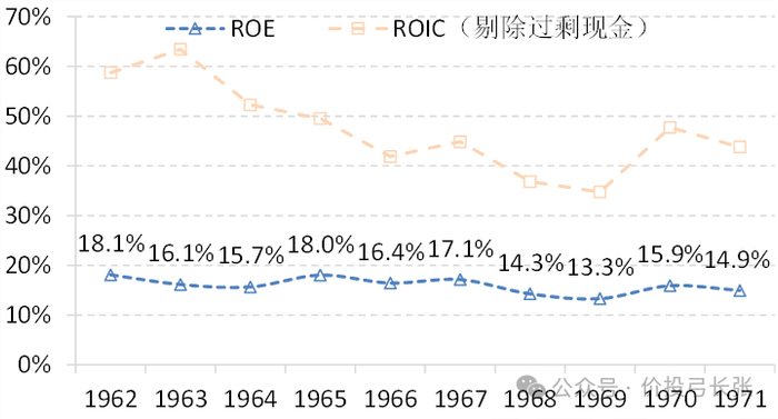 (1)1962-1971累计经营利润1650万元,过去十年没有任何融资。资本配置:(1)再投资344万元,再投资率20.9%,增量资本的投资回报率为40.3%;(2)分红820万元,平均分红比例49.7%。