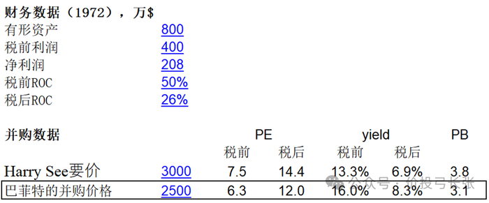 1972年1月,巴菲特以 2500万美元的价格收购了喜诗糖果,并支付了账面价值的 300%,对应税后PE12倍,对应税后yield再8.3%。相比之下,1972 年 1 月的 10 年期国债利率为 5.95%。