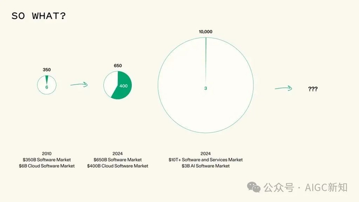 多亏了代理推理,AI 的过渡是服务即软件。软件公司将劳动力转化为软件。这意味着潜在市场不是软件市场,而是数万亿美元的服务市场。