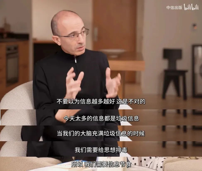 在访谈的后半部分,赫拉利也给出了自己的建议,如何应对这个时代海啸一般的信息洪流?这里面还大部分都是泥沙。