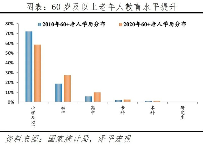 2)老年人综合素质明显提升,教育水平提升、健康水平提升、寿命延长。