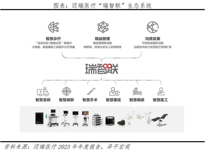 多元发展构筑战略纵深。1)2024年1月,收购惠泰医疗,快速进入电生理和血管介入等高值耗材领域。2)基于领先的腔镜平台,加速提升耗材市场份额,迈瑞在“设备+耗材”品类有较强的优势和研发基因。3)拓展动物医疗,面向不同动物以及应用场景,建立体外诊断、生命信息与支持、医学影像技术研究平台。