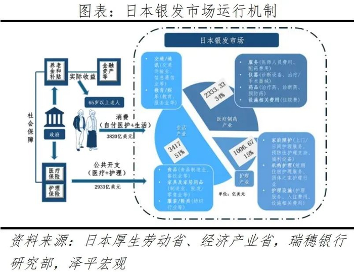 2005年,日本进入超老龄社会,政府多次修订相关政策,增加私营和非营利结构参与,且银发经济更加多元化,包括医药、护理、生活(住房改建和银发旅游等)等方面。