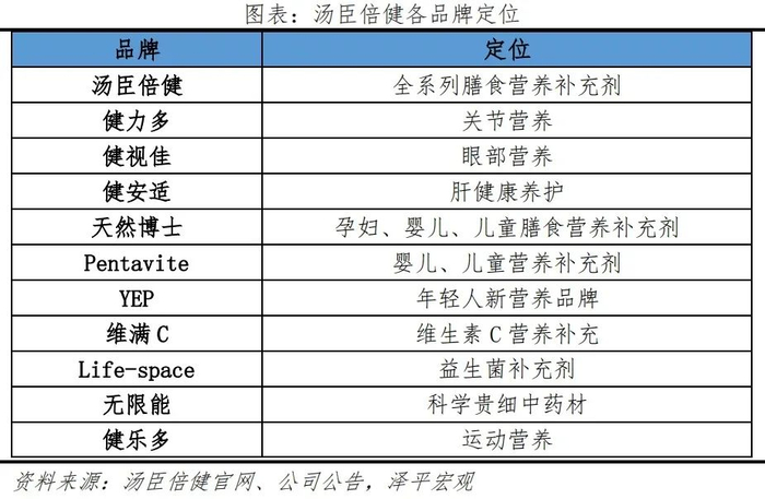 坚持实施大单品、多品牌、全品类战略方针,打造全覆盖品牌矩阵。在成功打造主品牌“汤臣倍健”后,通过不同细分市场的精准定位和突破,成功带动全品类产品销售。自2020年起,其采取“四大单品+两大形象产品+明星产品”的多品种布局。具体来看:四大单品以健力多和Life-Space作为核心大单品,同时将眼部健康的健视佳和肝脏健康的健安适作为储备大单品。双形象产品将蛋白粉和多种维生素矿物质片定位为形象产品。明星产品通过“牛初乳加钙咀嚼片”等,打造针对儿童市场产品。