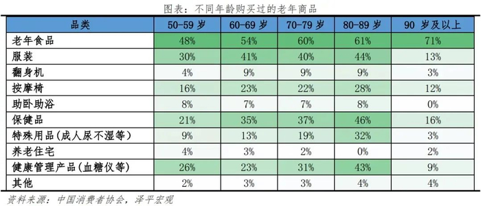 2)分年龄看,低龄老人需要消费、社交、娱乐,高龄老人需要照护服务,长寿老人关注身体机能变化等方面。传统老年人口划分为60岁及以上或65岁及以上人口,如果考虑备老人群,可把银发群体扩展到50岁及以上人群。按年龄划分,银发群体可分为准老人(50-64岁)、低龄老人(65-74岁)、高龄老人(75-89岁)、长寿老人(90岁及以上)。年龄阶段不同,老年群体的需求也不尽相同,其中准老人处于职业生涯晚期,身体相对健康,即将退休,重点关注文娱、抗衰老等方面;低龄老人刚步入退休阶段,处于退休适应期,重点关注健康管理、娱乐社交等方面,对短途旅行、老年大学等方面的需求增加;高龄老人身体机能减退,自理能力减弱,更加关注医疗保健、养老服务等方面;长寿老人更加注重精神层面需求,安享晚年生活。