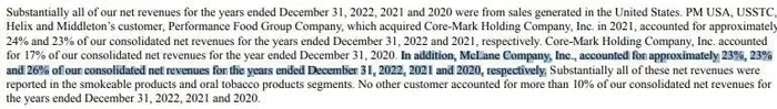 作为美国最大的便利店消费品的供应商之一,麦克莱恩也是最大的烟草产品的批发商之一。事实上,奥驰亚的年报显示,麦克莱恩是其最大的净收入来源之一: