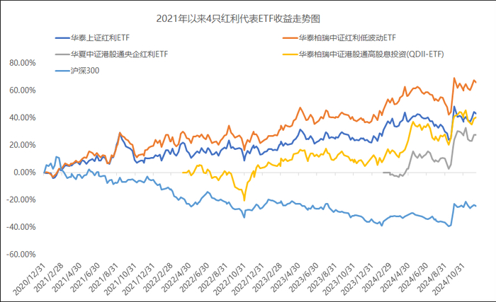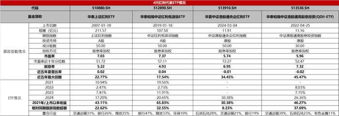 业绩稳定性更为突出:其选股的基础,除股息率外,更注重低波动属性。相较于华泰上证红利ETF做到了更高收益+更低波动, 2021年以来累计收益约65%(同期华泰上证红利为43%),同跟踪指数近五年最大回撤仅为-13%(同期上证红利为-23%)。
