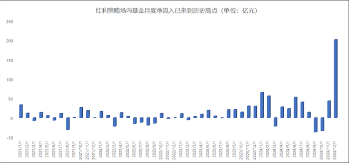 站在当下,国内经济仍呈弱复苏态势,中长期利率持续下行,外围美联储降息预期反复,A股持续震荡轮动。红利策略兼具高股息+低估值保护的特征,成为资金在权益资产配置中极具吸引力的策略类型,以险资为代表的中长期资金近期快速流入红利板块,月度流入创下历史新高。
