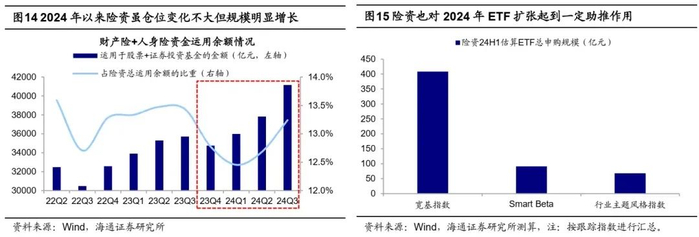 此外,尽管商业保险类资金年初以来权益仓位整体上升幅度有限,但险资资金运用余额存在明显增长、24Q3较去年末增长约18%,因此保险资金方面直接入市的增量同样可观、估算前三季度入市规模超3000亿元,同时我们估算24年上半年保险资金累计净申购ETF规模超550亿元。相较而言,其余投资主体情绪相对较弱,外资、杠杆资金等呈现净流出态势,主动公募基金则发行低迷、整体面临净赎回,因此2024年在9月24日前的A股行情整体面临波折,期间万得全A指数累计下跌14%。