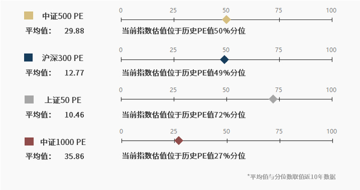 仅从估值来看,各大指数经历了较大的回调,目前所展示指数中,中证1000指数的估值均位于25%左右的较低历史分位区间。