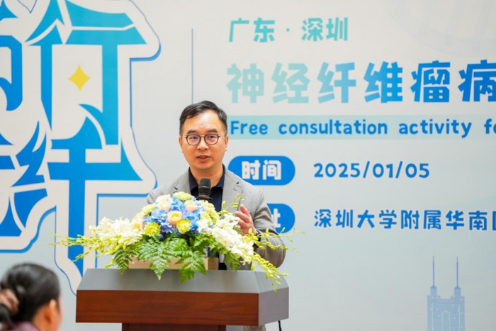 深圳大学附属华南医院副院长易石坚教授也发表了热情洋溢的讲话,对活动的举办表示祝贺,并强调了医院对神经纤维瘤病患者的关怀与重视。