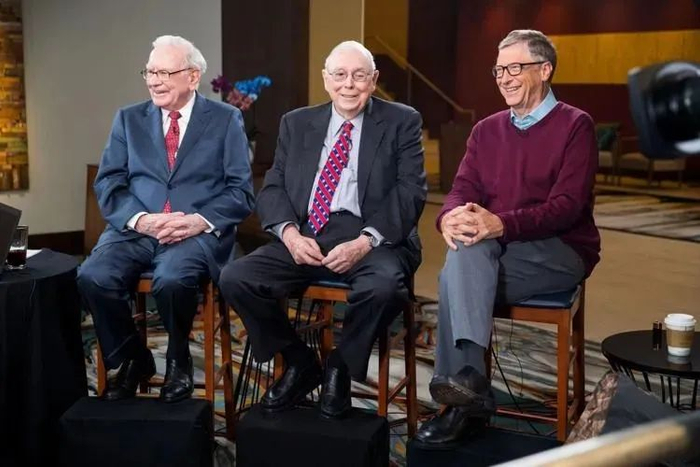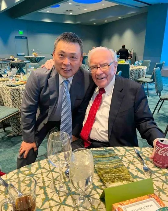 然后到2022年,我去他们股东大会,他请我去他们的晚宴,在奥马哈的水族馆。我觉得好有意思,在那个地方。我说我不会搞错吧,我英文不太好,早点去吧,我就提前半个小时,结果很顺利就找到了,人家路标什么的都很清楚。结果进到里面,它有一个大的厅,像礼堂一样的,里面摆了50张左右吃饭用的圆桌。进去的时候,里面就一张桌子上坐着两个人,就是沃伦·巴菲特和查理·芒格,我到那的时候,对面走过来一个人,叫比尔·盖茨,然后我们四个人坐下来。