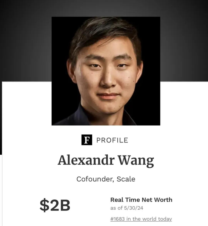 尽管在一年后其创立的公司Scale AI因估值大幅下滑,他的名字也从富豪榜上消失。