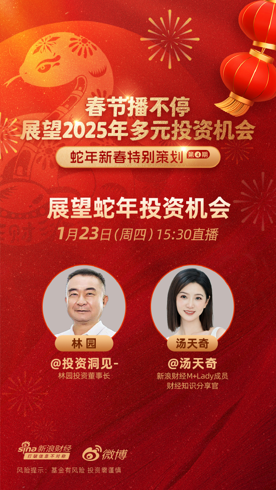 1月23日,中长期资金入市实施方案发布,2025股市将如何表现?新浪财经M+Lady成员、财经知识分享官汤天奇,连线林园投资董事长林园为您展望蛇年投资机会>>直播回放
