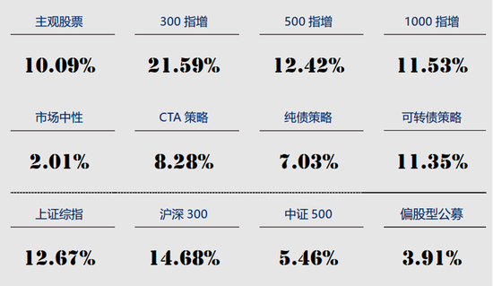细分来看,主观股票策略回暖,好于同期偏股型公募基金业绩;市场中性策略弱于2023年,期间产生不小回撤,策略面临不小挑战;CTA策略在2022年下半年到2023年的弱势之后,终于在2024年有所回暖;宏观策略则普遍取得了不错的表现。