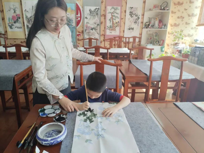 国画课程包括趣味水墨和写意国画、工笔花鸟等不同风格的教学。趣味水墨课程中,学生们认识文房四宝,学习毛笔的基础握笔方式,并将绘画与手工相结合,玩转水墨、色彩;写意国画课程则着重于让学生了解并掌握中国画的用笔、用墨技巧;工笔花鸟课程运用白描造型、勾勒填色等技法,培养学生专注力和细致的观察力。通过这些课程的学习,学生们不仅提高了绘画技艺,更深刻理解了国画所蕴含的文化内涵和审美情趣。