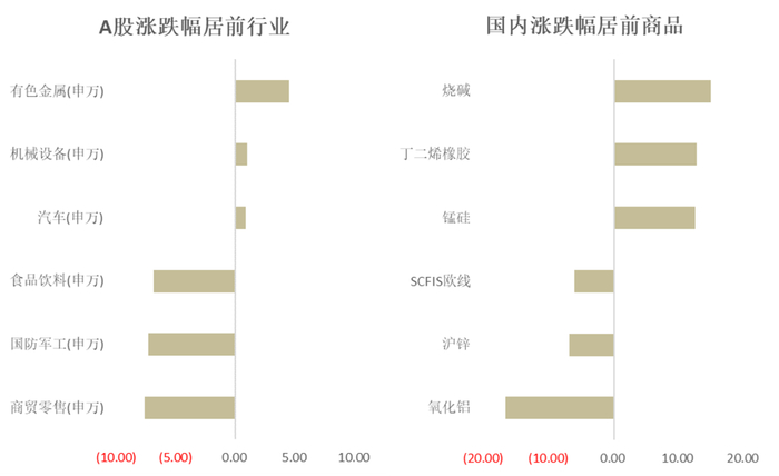 而在产业逻辑主导下,烧碱和锰硅领涨,氧化铝和沪锌则领跌。
