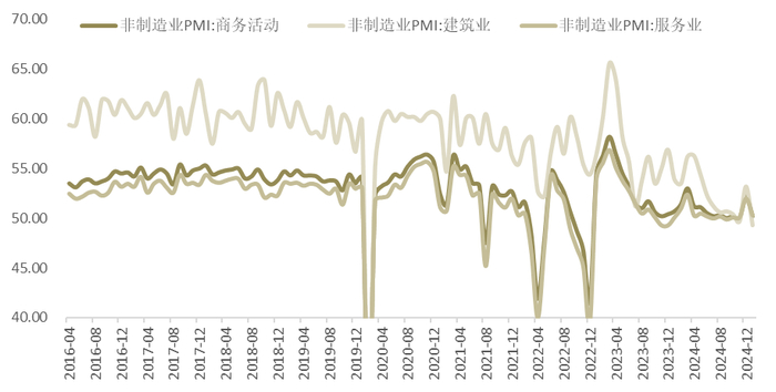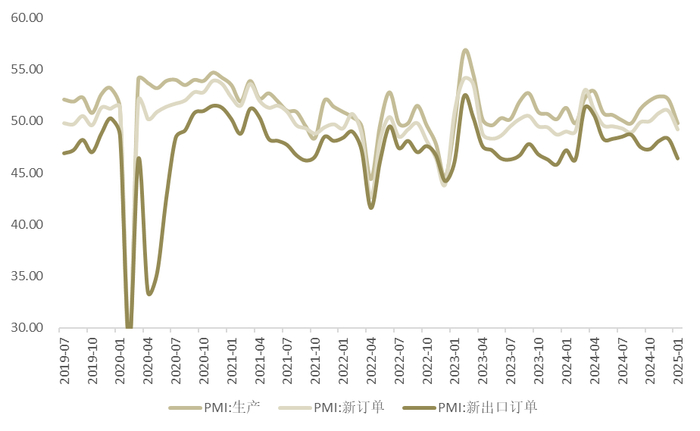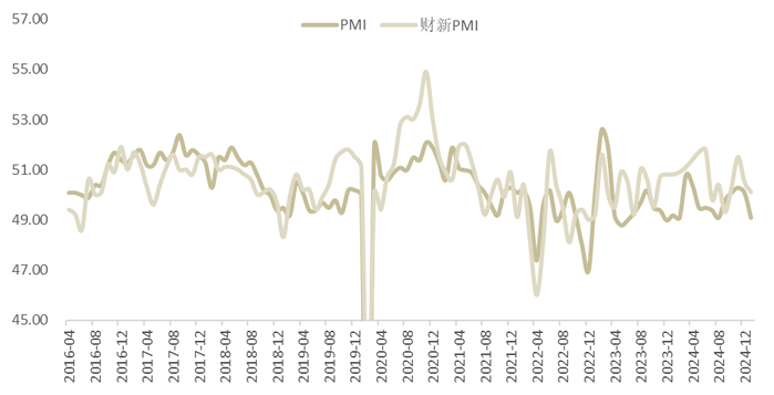 1月官方制造业PMI为49.1,较前值的50.1明显下行,重新落回收缩区间。同期公布的财新制造业PMI为50.1,也较前值的50.5有所回落。1月的制造业PMI指数超季节性下行,49.1的读数也处于2023年以来的次低水平,或受到特朗普上台前的抢出口效应消退的影响,也有一些研究认为是今年春节人员流动加大影响,其未来走势值得密切关注。