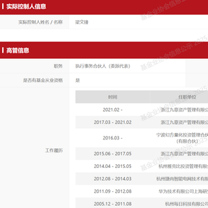 据时代财经查阅中国证券投资基金业协会私募基金管理人公示信息,徐进作为幻方量化执行事务合伙人(委派代表),曾于2005年12月至2011年8 月在杭州每日科技有限公司(下称“每日科技”)技术部担任技术总监,2015年与梁文锋共同创立幻方量化。